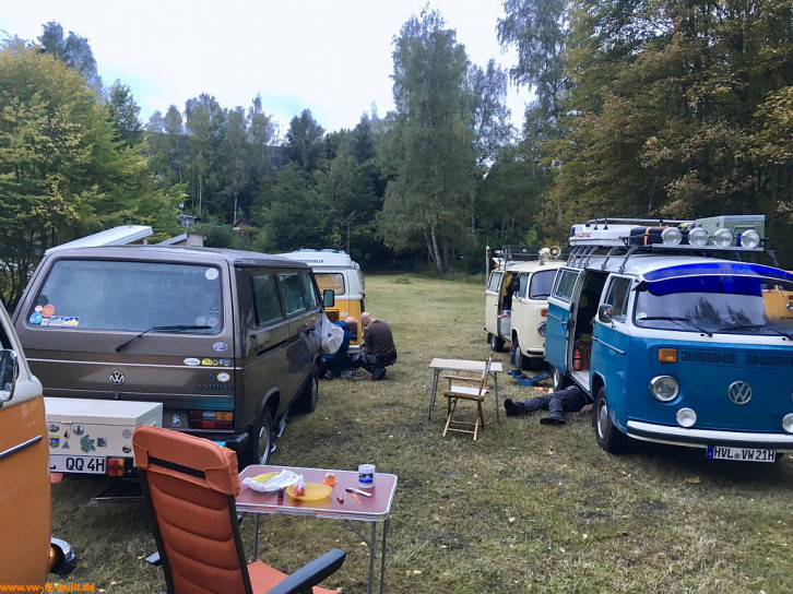 Die genaue "Goldenen Oktober" Route bleibt geheim - grob ging es über die Rhön, Erzgebirge, Elbsandsteingebirge bis Dresden mit insgesamt 27 Bullis.