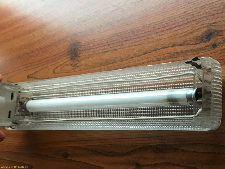 Für unsere Berlin Ausstattung haben wir auch eine sparsame original Hella Innenleuchte der Berlin Ausstattung montiert. Sie hat eine Leuchtstoffröhre T5 5/8" bzw. 16mm Durchmesser x ca. 288mm Länge.