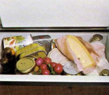 Bei unserer Ausstattung fehlten der Tisch und alle Seiten- und Dachverkleidungen und es handelte sich nur um eine passive Kühlbox.