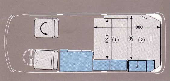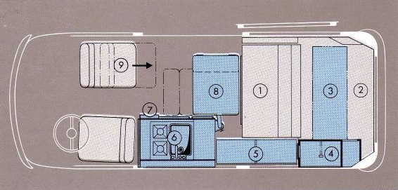 Der Vorteil der "Berlin" Ausstattung ist der Erhalt des großen Ladetaums im Bereich der Schiebetür. Bei der Helsinki steht dort der Kühlschrank und Waschtischblock großräumig im Weg.
