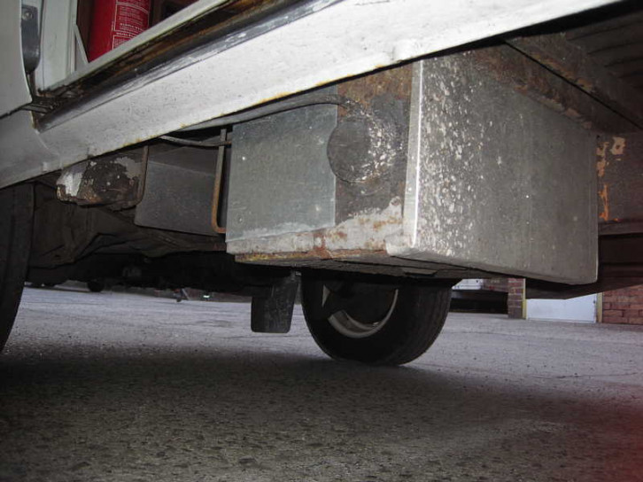 Unter der seitlichen Sitzbank befinden sich zwei Staukästen weit aus dem Unterboden rausragend mit Bodenentlüftung für je eine Gasflasche.