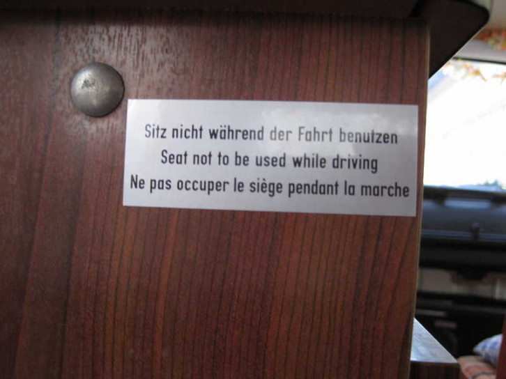 Unter der Bodenklappe nahe der Schiebetür findet sich eine Unterflur-Standheizung ebenfalls markant aus dem Unterboden herausragend. Das Bedienteil findet sich an der Wand der Klappbank.