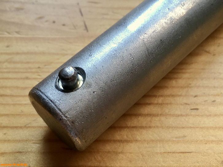 Diese 20" bzw. 500 mm lange und 20 mm starke Drehstange nach DIN 3122 für Schiebestück 1015-1 und anderes ist Teil des 4-teiligen Sets 2510 für Schwungscheibe und Hinterachse bei Typ 1, 2 und 3.
