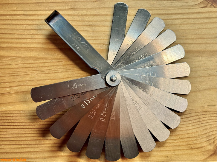 Diese 20-teilige und 106 mm lange Fühlerblattlehre nach Fühlerlehren-Satz D, DIN 2275 wird und anderem zur Messung des Ventilspiels oder Elektrodenabstandes bei Zündkerzen benötigt - für luftgekühlte VWs geeignet aber eher schon überdimensioniert.