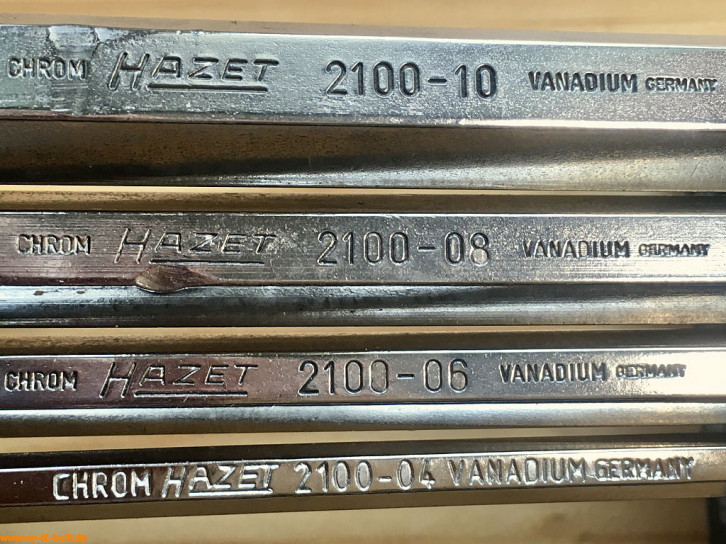 Aufschriften sind "CHROM", "HAZET 2100-04", "HAZET 2100-06", "HAZET 2100-08" bzw. "HAZET 2100-10", "VANADIUM" und klein "GERMANY".