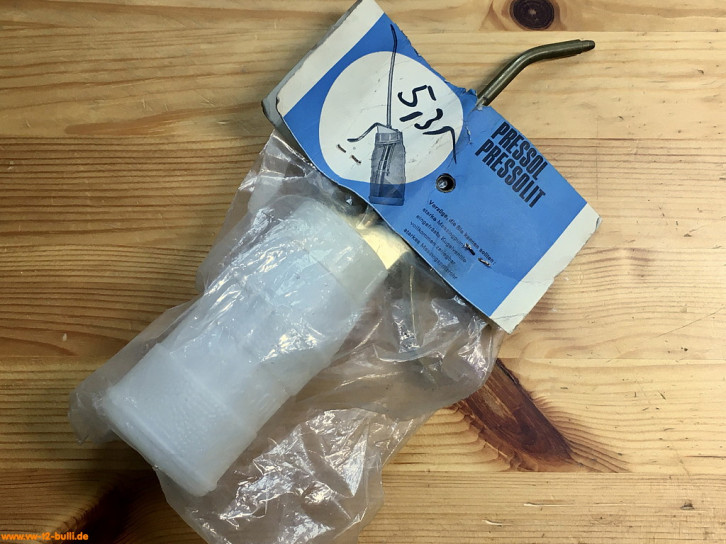 1963 wurde sie durch 150 ml Pressol Kunststoffflasche ersetzt im Katalogbildern auch erkennbar mit weißtransparentem Kunststoffschraubdeckel und Messingteilen. Ende der 90er bzw. bei HAZET 2005 dann ersetzt durch eine andere asymmetrische Form mit Red Dot Design Award von Pressol.
