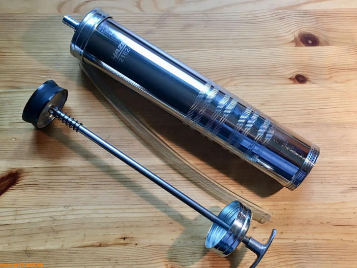 500 ml Saug- und Druckspritze für z.B. Motoröle. Nicht geeignet für säurehaltige Flüssigkeiten. NBR-Dichtungen und verzinkt Stahl.