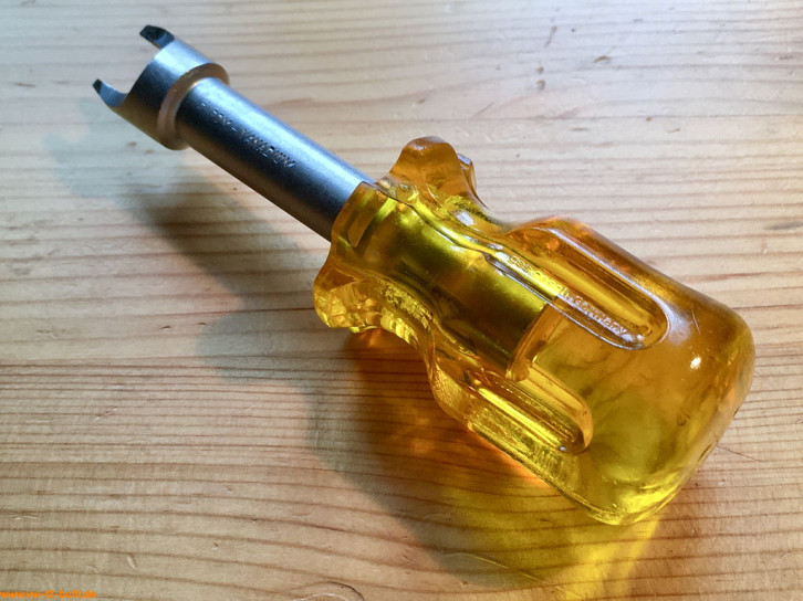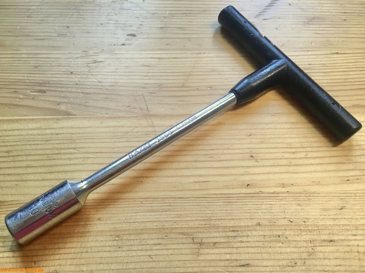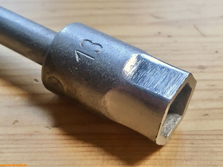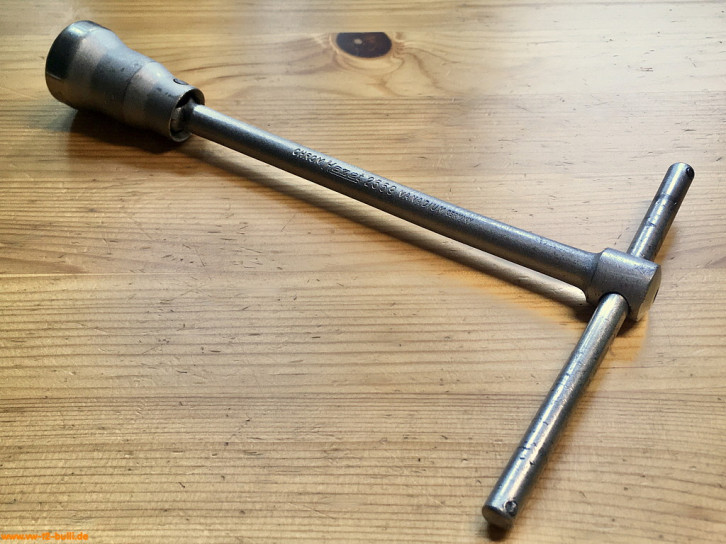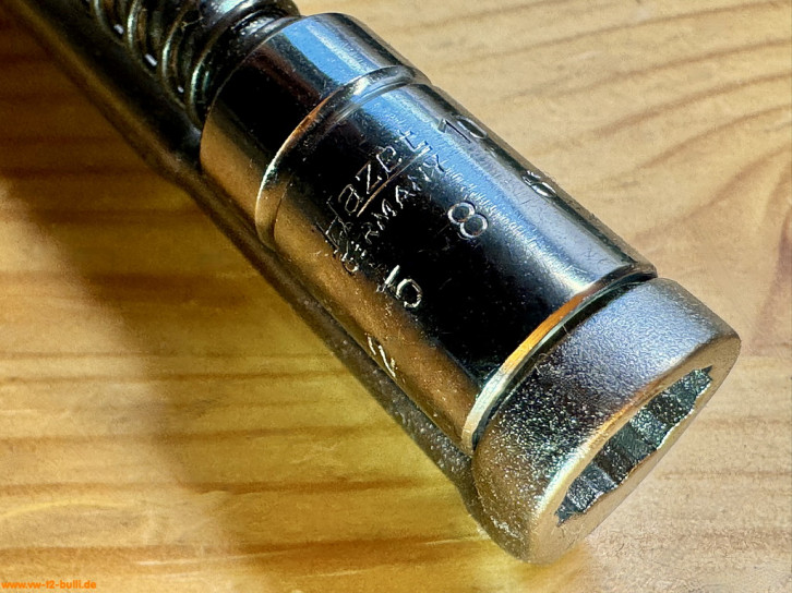 Auch heute noch recht vorteilhaft, da durch die Verblechung ein langer Weg zur Zündkerze liegt und man diese nicht auf dem Weg zum Kerzenloch verlieren sollte. Der 3/8" Antrieb für eine Ratsche beschleunigt die Arbeit.