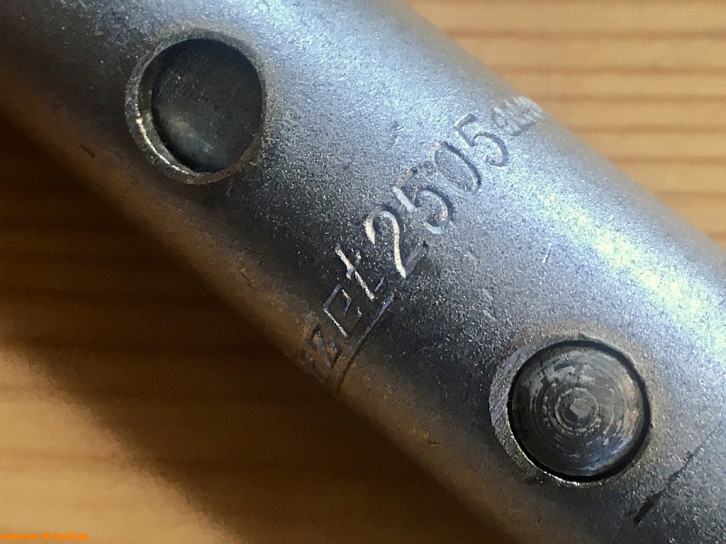 Aufschrift ist "CHROM HAZET 2569 VANADIUM DBGM" letzteres für Deutsches Bundes-Gebrauchsmuster und auf der Rückseite "17" und "CHROM HAZET 2569 VANADIUM GERMANY".