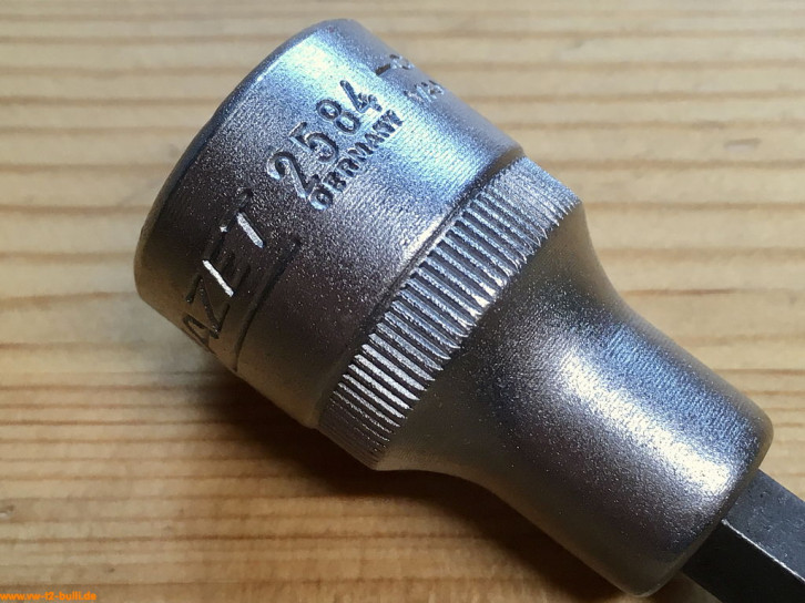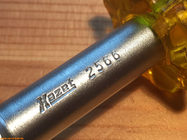 Dieser 1/2" Einsatz für lnnensechskantschrauben wurde für die Antriebs-/Gelenkwellen früher T2 Bullis zeitweise genutzt, bevor VW um 1979 auf belastbarere Innenvielzahnschrauben (XZN) auch rückwirkend umstieg (siehe HAZET 990 8Lg).