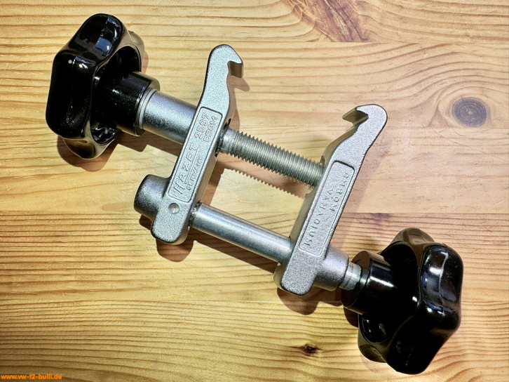 Spanner mit zwei Sterngriffschrauben (eine steht fest) für die Montage des Stabilisator unter der Vorderachse an VW Typ 1 (Käfer & Co außer damals 1302 und 1302S) und Typ 2 (Transporter & Bus) Fahrzeugen.