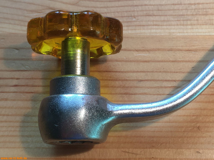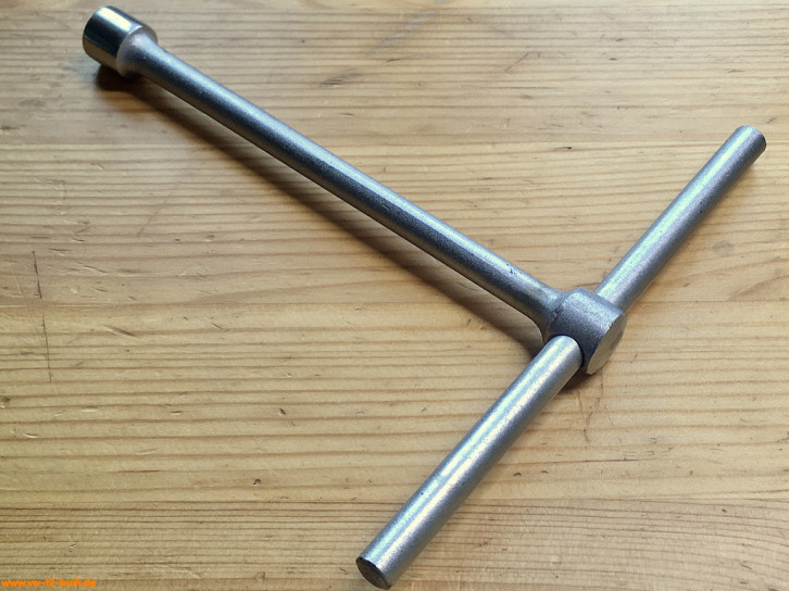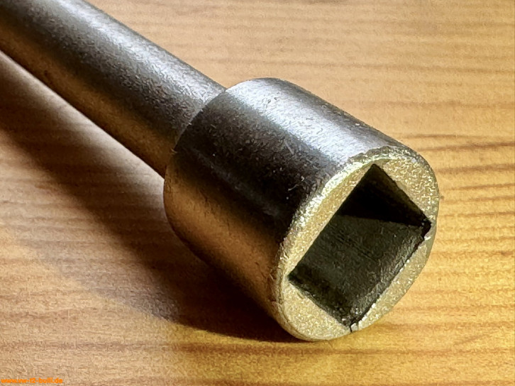 Dieser 150 mm lange T-Griff-Schlüssel mit 8 mm Innenvierkant diente zum Lösen und Anziehen der Spezialschrauben an der Schaltstangenkupplung und Schaltgabeln bei Typ 1 und 2.