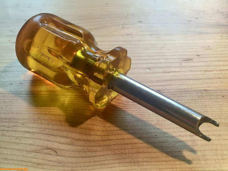 Zum Abziehen der VW Radzierkappen, die dafür zwei Löcher am Rand hatten ab August 1966.