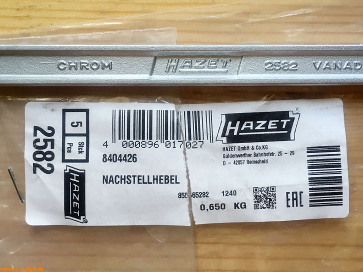 Aufschriften sind "CHROM HAZET 2582 VANADIUM" und "CHROM HAZET VANADIUM GERMANY".