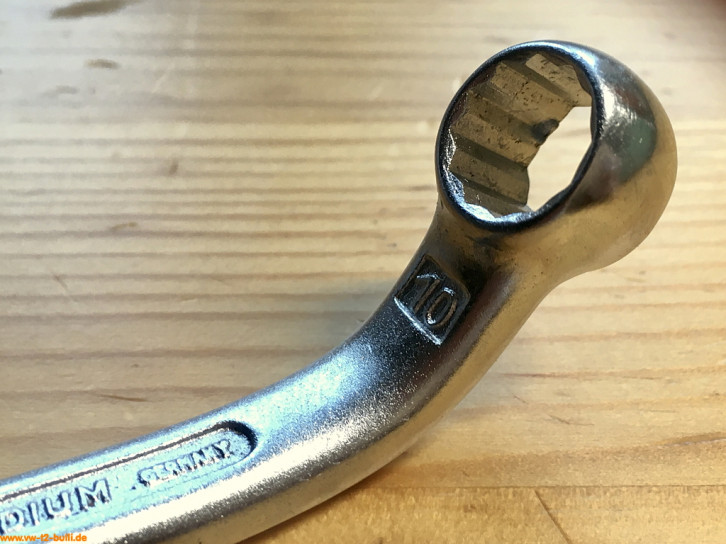 Dieser 10 mm Spezialschlüssel mit Gesamtlänge von 285 mm diente den Befestigungsmuttern am Ansaugrohr.