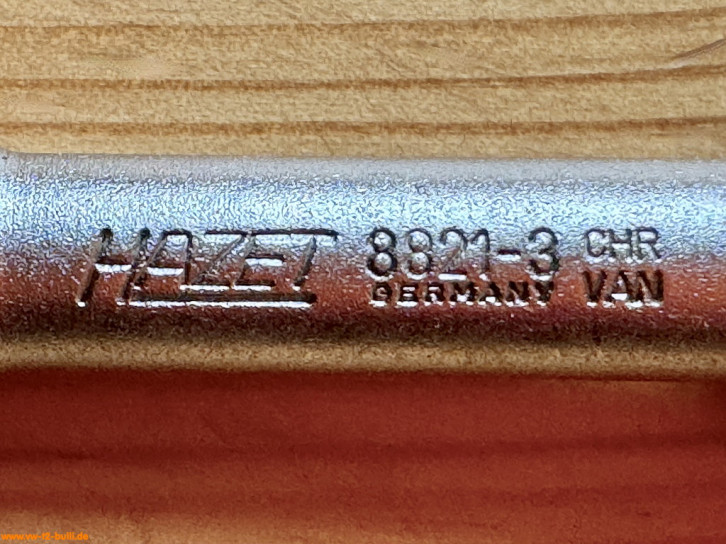 Aufschriften sind "HAZET", "8821-3", darunter klein "GERMANY", zweizeilig "CHR" & "VAN".