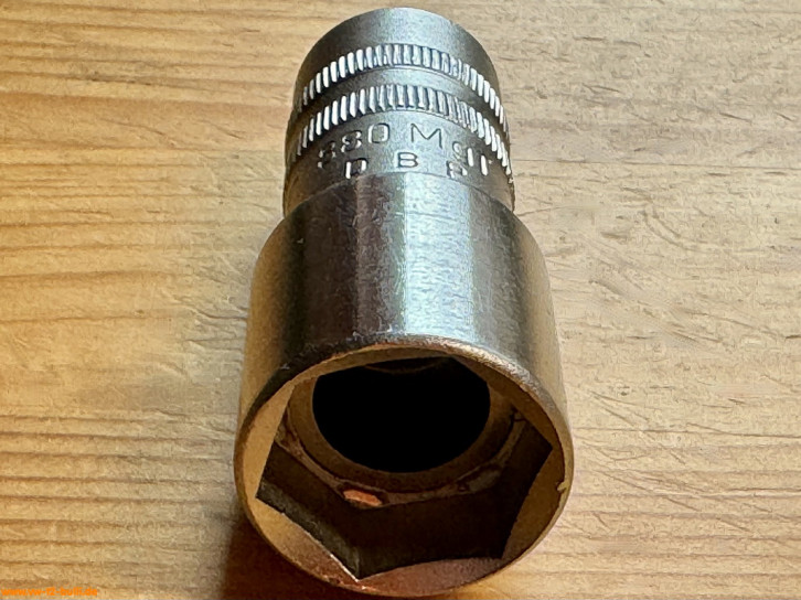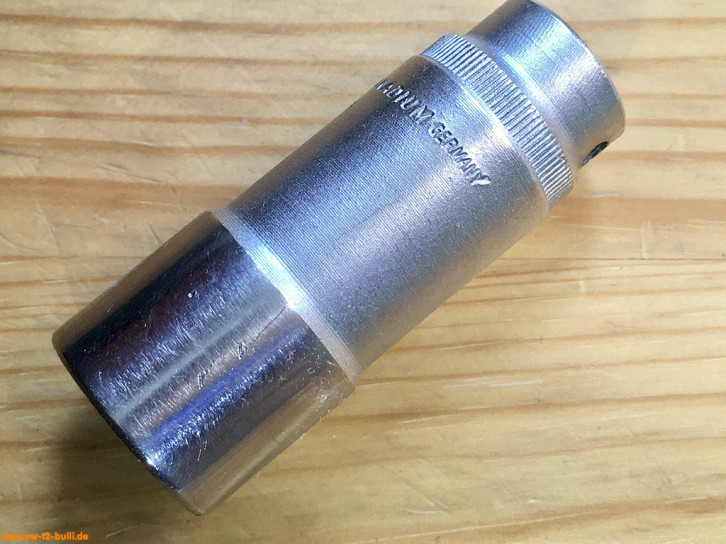 Dieser 3/8" Zwölfkant-Einsatz für Zündkerzen gehörte zeitweise optional zur HAZET Werkstattausrüstung für luftgekühlte VWs in den 1970ern.