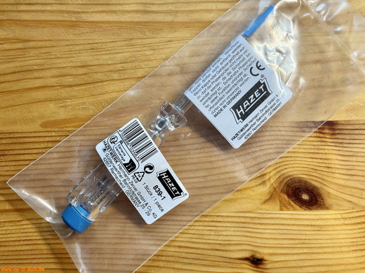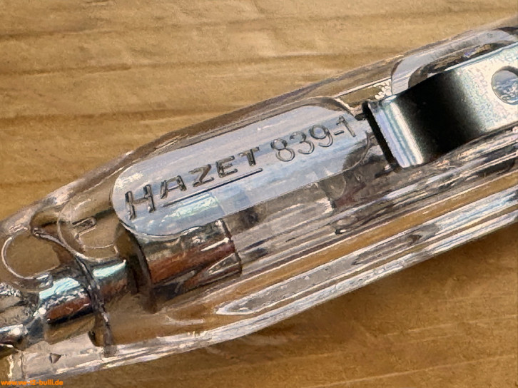 In HAZET Katalogen gibt es ihn ab 2019 bis 2025. 2025 kam ein neues Modell auf 839P mit VDE Schutzisolierung bis 1000V und weniger transparenten Kunststoff.