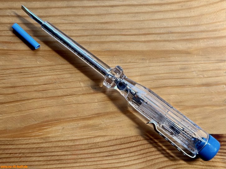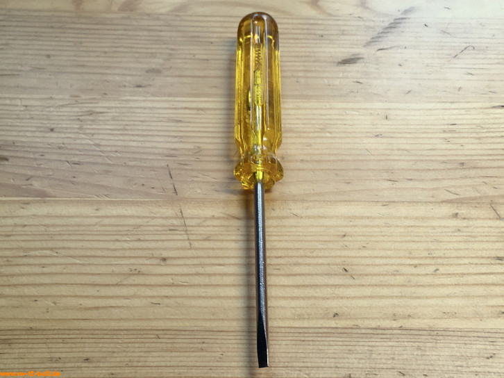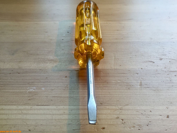 Dieser 145 mm lange Phasenprüfer/Spannungsprüfer nach DIN VDE 06800-6 und Schraubendreher mit 2,8 mm Klingenbreite und Clip noch in alter Bauform mit integrierter Soffitte nach VDE nicht auswechselbar.