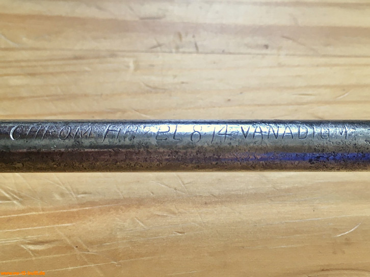 Aufschriften sind "Hazet isolit", "ges. gesch. Germany" für "gesetzlich geschützt" und eingeprägt "CHROM VANADIUM" und 834-4-" (man erkennt bei meinem nur noch die "8" und "-4" - die Abmaße stimmen aber mit dem Katalog überein).