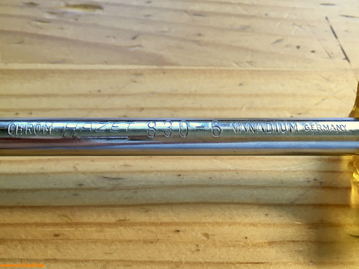 Aufschriften sind auf der Klinge "CHROM Hazet 815-6 VANADIUM".