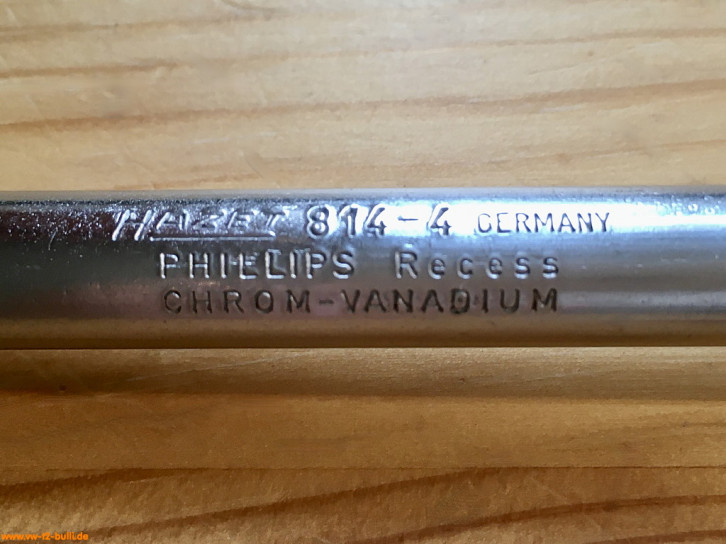 Aufschriften sind auf der Klinge "815-4", "HAZET 815-4" auf dem Griff und auf dem Schaft "CHROM VANADIUM" und "GERMANY".