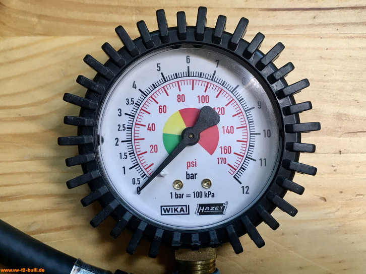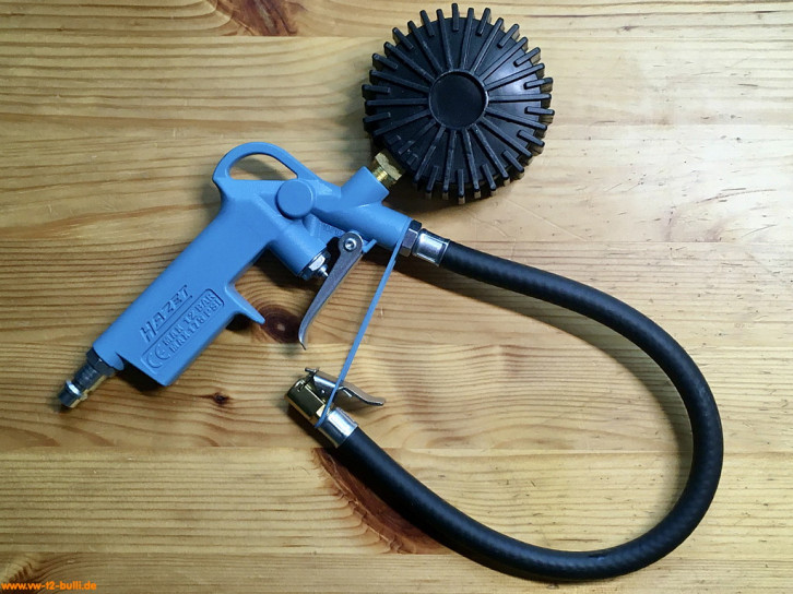Dieser recht einfache Handgriff mit Betätigungshebel und Ablassknopf für Reifenluftdruck mit Manometer für 0 bis 12 bar (max Druck für Schlauch und Ventilhalter aber nur 8 bar!) ersetzte irgendwann ein NoName-Produkt in meiner Garage. Es gibt auch noch digitale und geeichte Versionen, die bei mir aber nicht nötig sind.