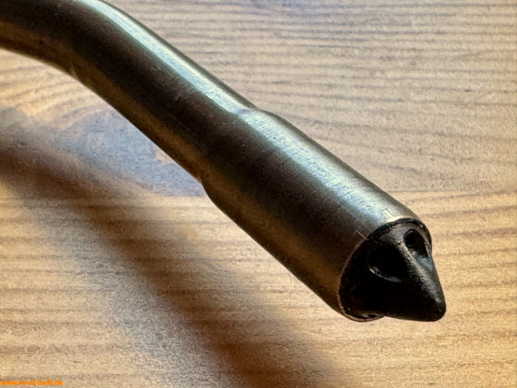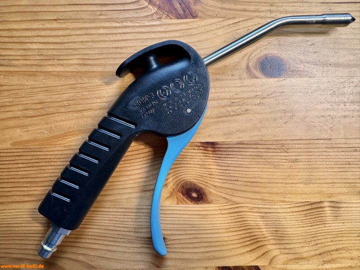 Diese 255 mm lange Ausblaspistole ist geräuschreduziert mit Handgriff aus nicht wärmeleitenden Acetat-Kunststoff ersetzt bei mir ein billige schwere NoName Pistole, die schnell auskühlt und lauter ist.