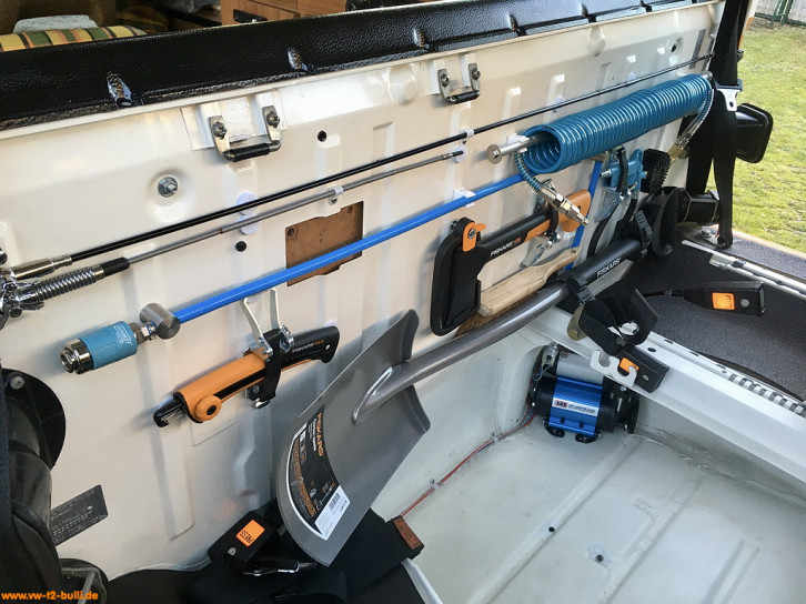In unserem T2 Bulli an der Trennwand hinter den Vordersitzen montiert: