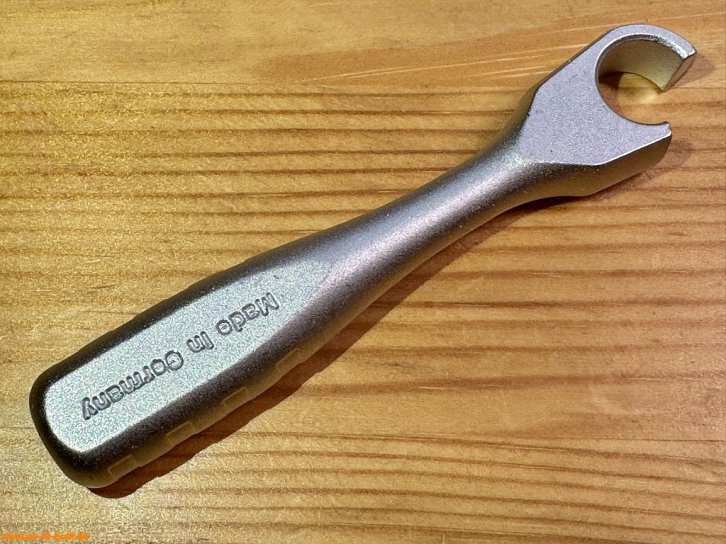 90 mm kurzer Flaschenöffner von 2025 auf der Basis der 1/4" Mini Vollstahl Feinzahn-Umschaltknarre 863 MB.