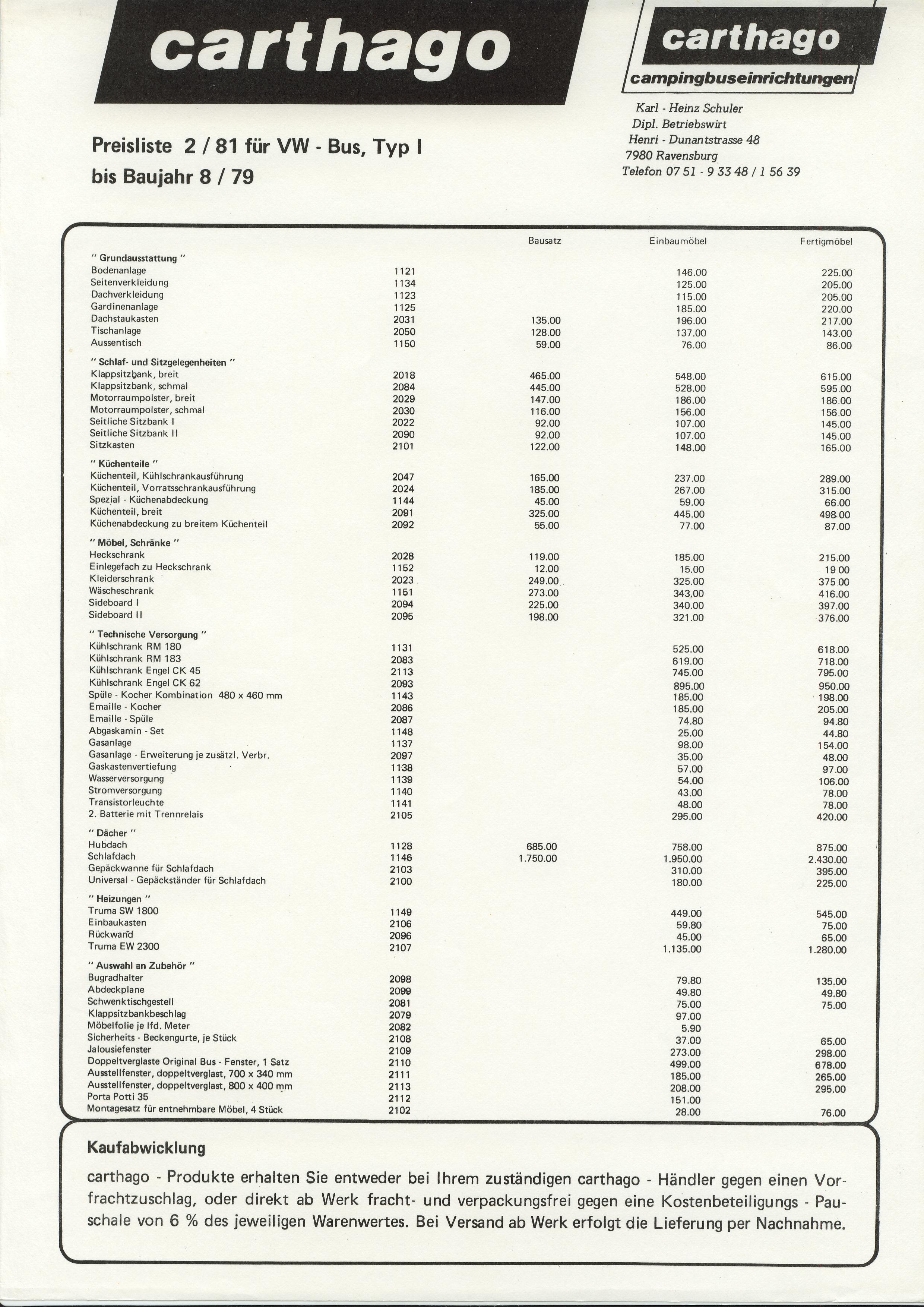 Carthago-Camping-Buseinrichtungen, Seite