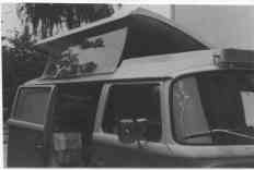 Eine 2-3cm dicke Styropor-Schaum-Isolierung, die wir im Winter beim Skifahren brauchen, bewährt sich auch bei extremer Sonnenbestrahlung bestens. In unserem Wagen ist es kühler als unter einem schattigen Baum, auch in der Mittagshitze. Ein Ausschnitt im Dach mit Deckel über den Fahrer-Sitzen macht unseren Bus zum "Kabriolet" und dient als Foto-Kanzel bei wilden Tieren, schüchternen Negern und frech bettelnden Straßenjungen. Die Fenster in den Türen, die Heckklappe und der Dachausschnitt lassen sich mit Klettenband und Moskito-Netzen abdichten. Ein kurzer Sprüh mit Flit lässt am Abend die bereits vorhandenen Fliegen und Moskitos zu Boden sinken und so haben wir meist eine ruhige Nacht. Für jeden ein kleiner Ventilator mit Kugelgelenk und Saugnapf an der Verbundglas-Frontscheibe sorgt für frischen Wind.