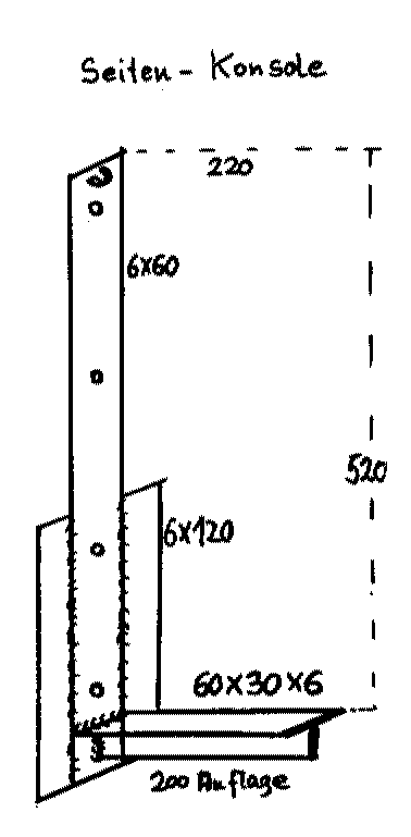 Auf die drei Konsolen kommt ein langes Brett 3.1000 x 200 x 30 mm. Das reicht vor bis etwa zur Tür-Mitte. Dann ist die Fahrertür ein für allemal zu. Daran gewöhnt man sich aber schnell. Wir haben ja den Durchgang u. steigen beide meistens bei der seitlichen großen Schiebetür ein- u. aus. Das hat sich so ergeben.