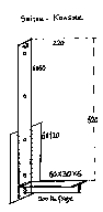 Auf dieses lange Brett kommt eine lange Randleiste damit Kanister u. Bleche nicht abrutschen, u. für jeden der 8 Kanister eine Querleiste zum besseren Halt. Es wäre noch ein 9. Platz, den haben wir mit Ölkannen ausgefüllt. An die Wagenwand kommen zum Schutz 2 20 mm dicke Styroporstreifen mit doppelt klebendem Teppich-Band. Die Kanister stehen auf dem Brett, jeder in seinem "Fach". Sie werden seitlich u. obendrauf durch je ein langes Lochblech gehalten. Die 4 halblangen Lochbleche, (zersägt um zwischen den Radstand zu kommen), werden seitlich außen in das als Deckel dienende Lochblech eingehängt. Das ganze wird mit 3 Scharnieren, 3 dünnen Flacheisenstreifen u. 3 Feder-Spannern fest an die Seitenwand gespannt. Das hält dann gut u. die scheinbar einseitige Belastung beeinträchtig die Federung u. das Lenkverhalten keineswegs. Als Ausgleich dienen teils auch die Wasserkanister auf der Gegenseite.