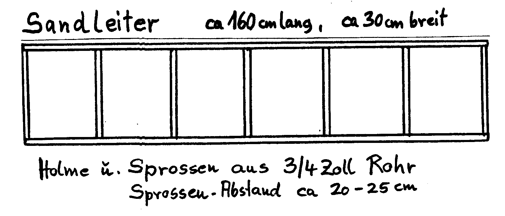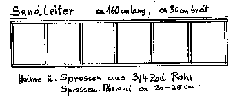Sandleitern sind aus sehr kräftigem Stahlrohr zusammengeschweißt. Man muß sie sich nach eigenen Angaben herstellen lassen. Man solte mindestens 4 Stück haben. Lochbleche sind leichter u. bieten mehr Fläche.