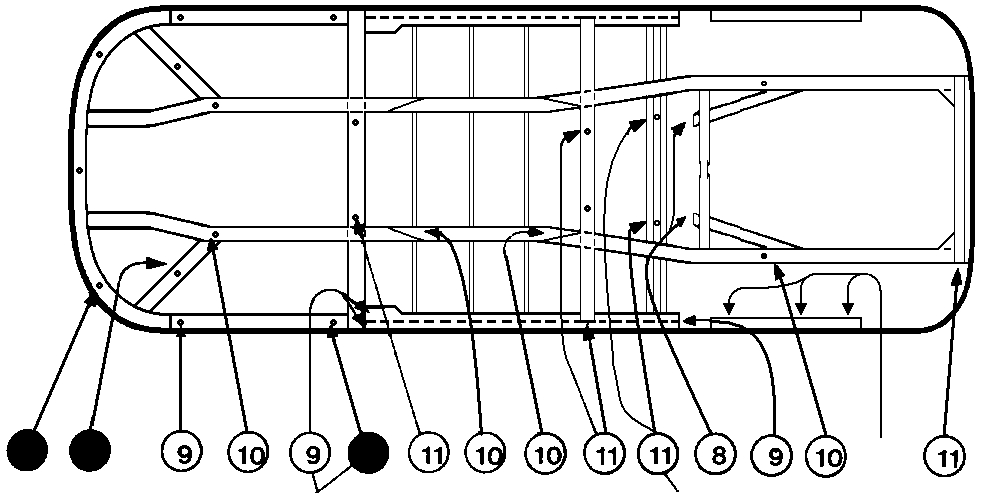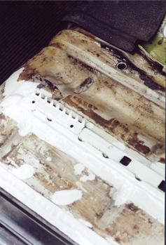 (Bei neueren Baujahren ist das Bodenblech des Querträgers entfallen, so daß dort kein Hohlraum mehr entsteht.)
