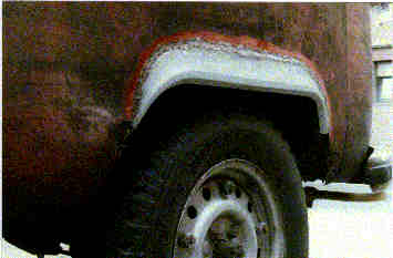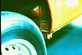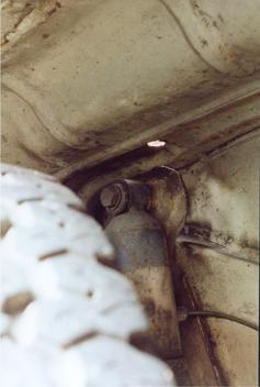 Die Außenwand des hinteren Radkastens bildet einen Holhlraum. An der Innenwand, also vom Radkasten her zugänglich befinden sich drei Bohrungen.