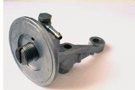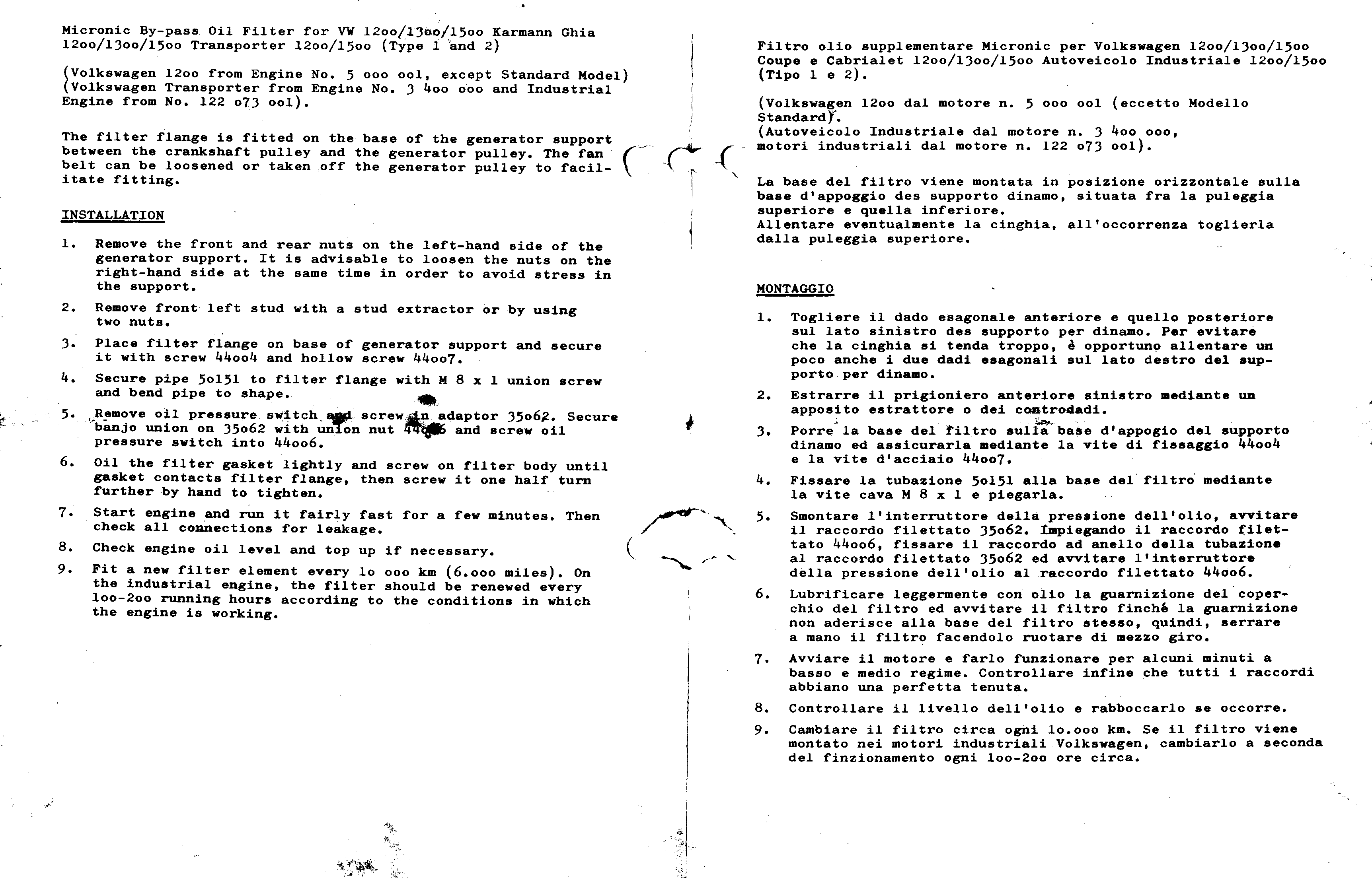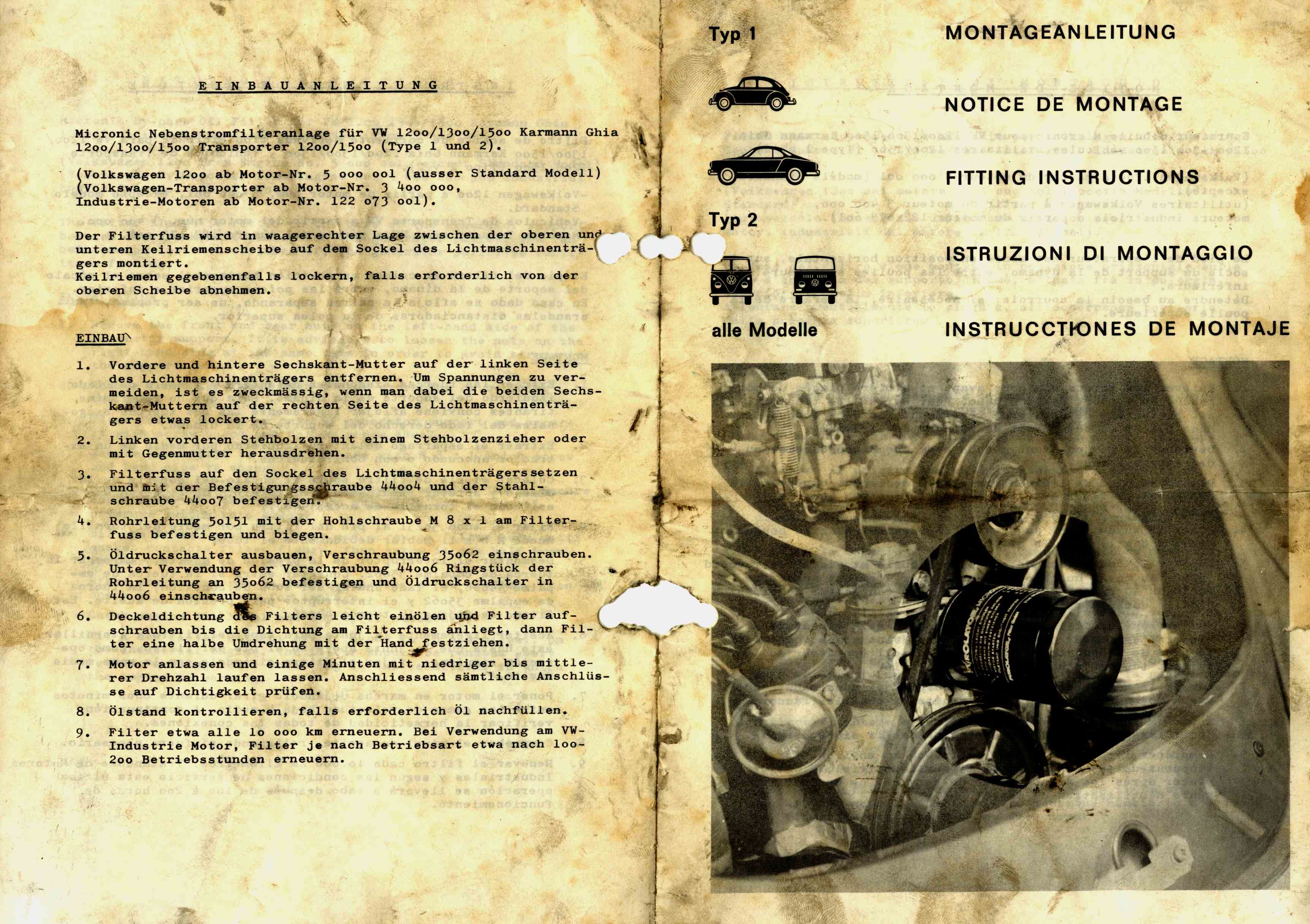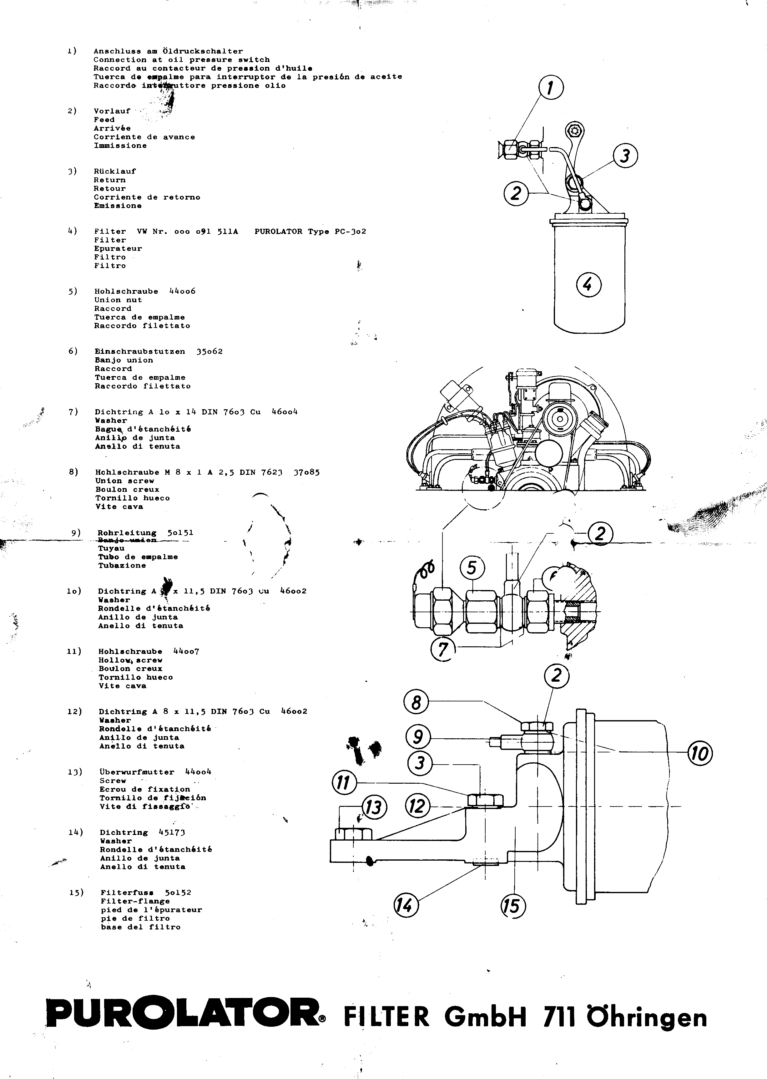 Der Nebenstromölfilter erhält das Öl von einem Verteileradapter am Öldruckwarnschalter und entläßt das feingefilterte Öl durch einen hohlgebohrten Bolzen, der einen der vier Stehbolzen des LiMa-Halter ersetzt, in die Ölwanne: