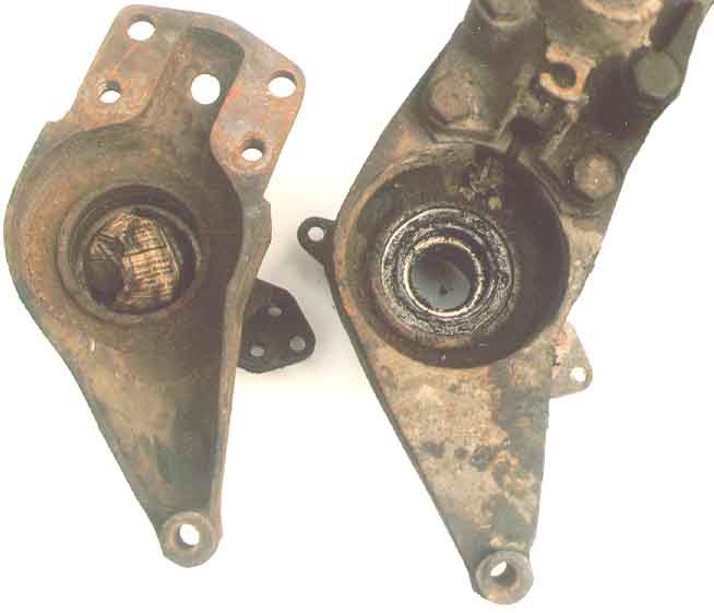 Für die Vorderachse des VW-Bus Bj 7/70-79 gibt es zwei verschiedene Vorderachsen für normale (1010kg) und erhöhte (1200kg) vordere Achslast. In die verstärkte Vorderachse passen die normalen Federn und Tragarme nicht, sondern nur die verstärkten Ausführungen (und umgekehrt). Ist der Wagen schon vom Werk mit erhöhter Nutzlast ausgeliefert worden, so sind auch Achsschenkel, vordere innere Radlager, hintere Radlagergehäuse und Federstreben in verstärkter Ausführung eingebaut. Von außen ist dies am einfachsten an der Form der hinteren Radlagergehäuse zu erkennen.