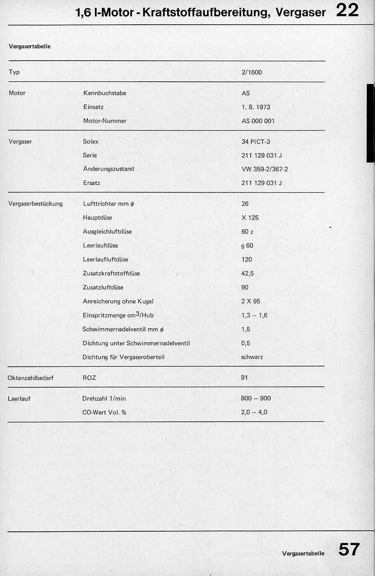 siehe auch: Technisches Merkblatt 9, 1,6-Liter-Motor A - Vergaser (August 1975)