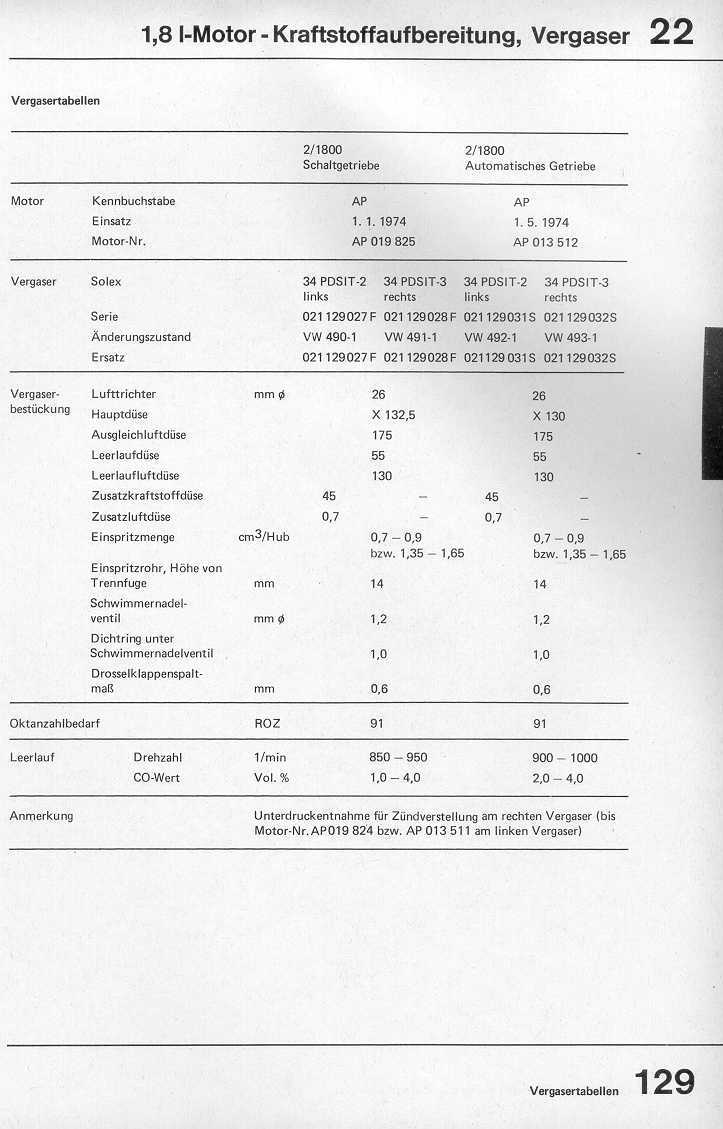 siehe auch: Technisches Merkblatt 19, Grundeinstellung der Drosselklappen, Einspritzmenge für Beschleunigungspumpe (November 75)