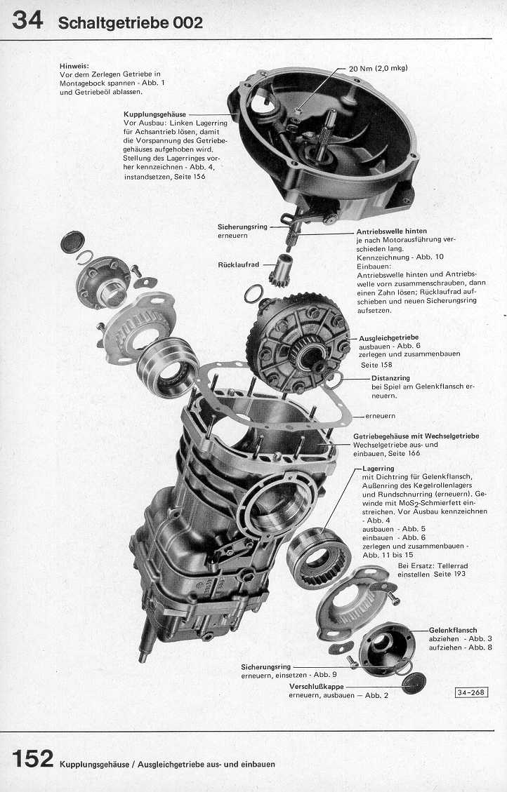 Reparaturleitfaden VW-Transporter Typ 2 Ausgabe Januar 1975, VW 0.00.533.106.00, Seite 152