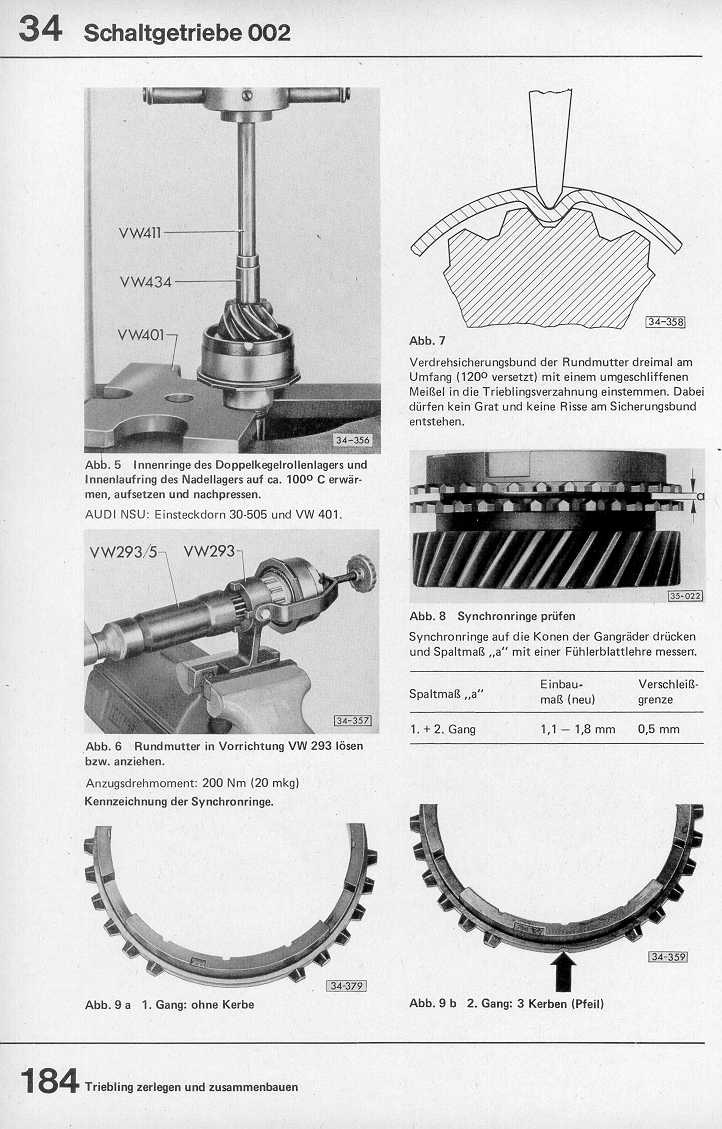 Reparaturleitfaden VW-Transporter Typ 2 Ausgabe Januar 1975, VW 0.00.533.106.00, Seite 184