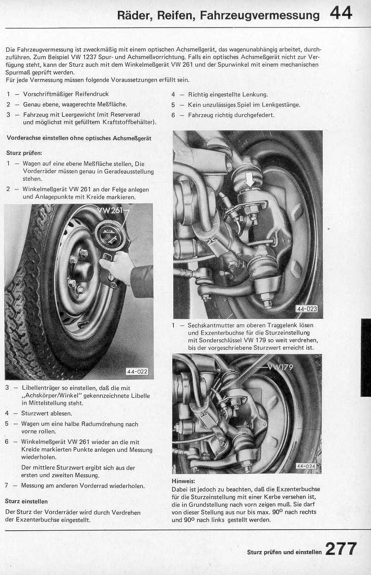 siehe auch: Technisches Merkblatt 42, Sollwerte Fahrzeugvermessung (Juni 1978) bzw. Sollwerte Transporter bis 5.79 Fahrzeugvermessung (Januar 1982)