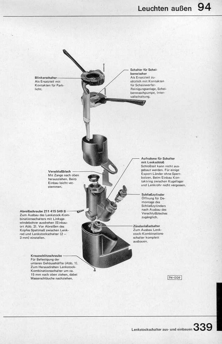 siehe auchTechnisches Merkblatt 4, Selbsttätiges Einschalten des Fernlichtes, Unbeabsichtigtes Umschalten des Fern- oder Abblendlichtes,Technisches Merkblatt 20, Schließzylinder aus- und einbauen