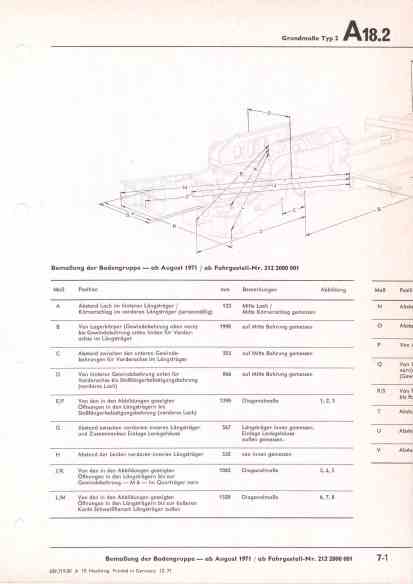 Bemaßung der Bodengruppe - ab August 1971 / ab