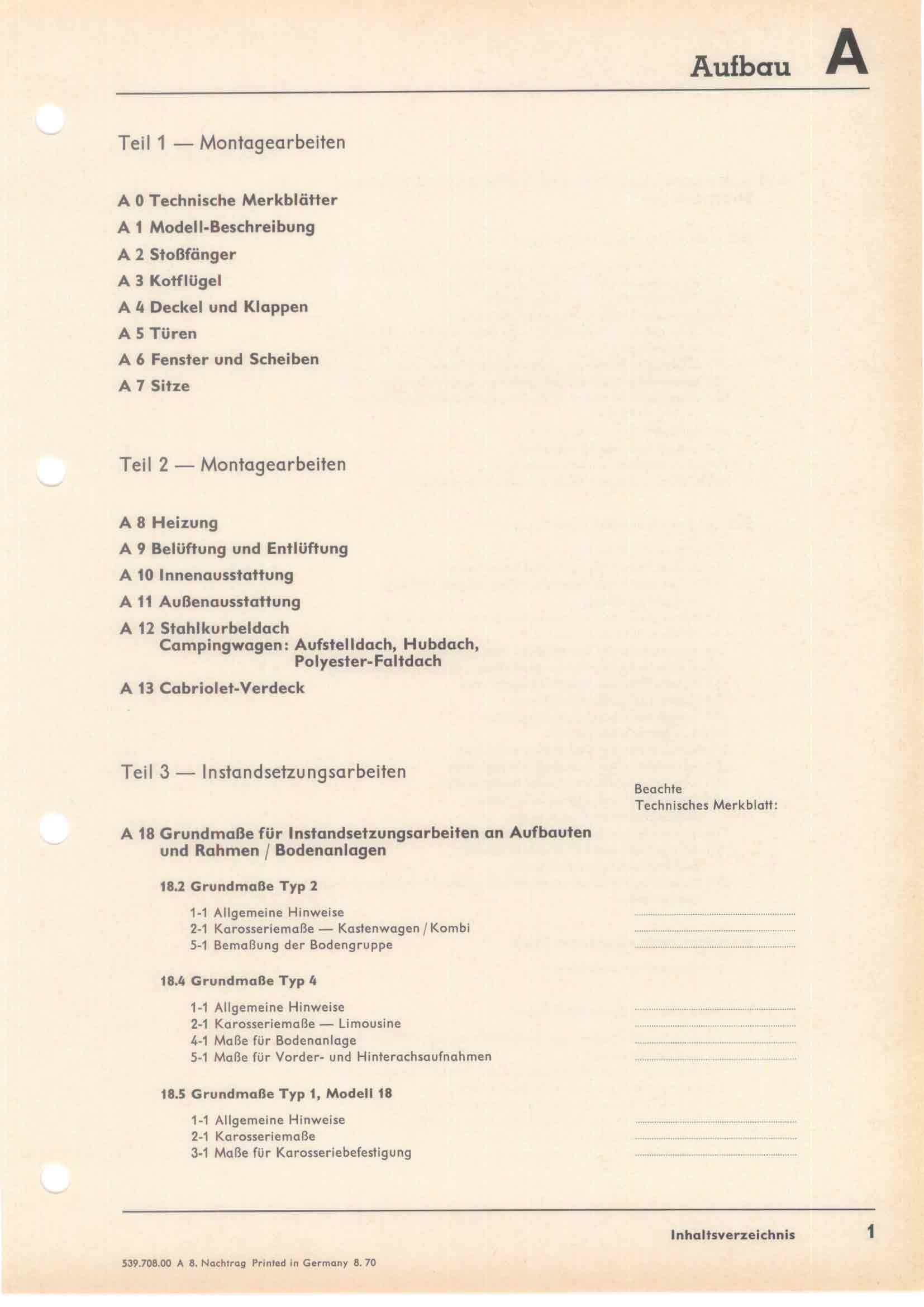 RLF Aufbau Instandsetzung 1, Inhalt Seite 2 (08/70)