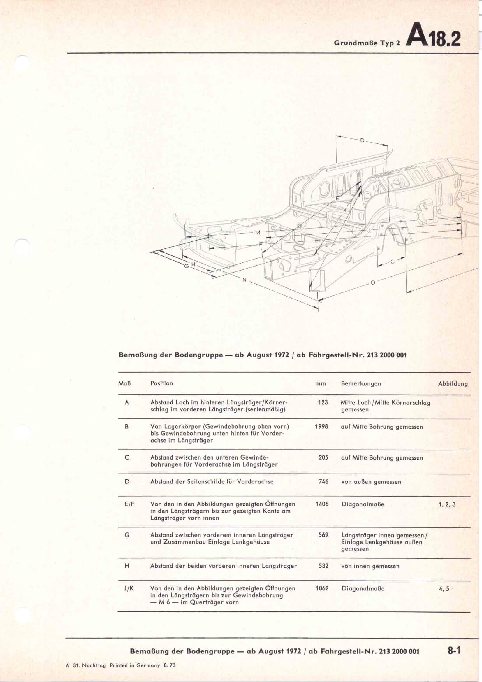 Bemaßung der Bodengruppe - ab August 1972 / ab