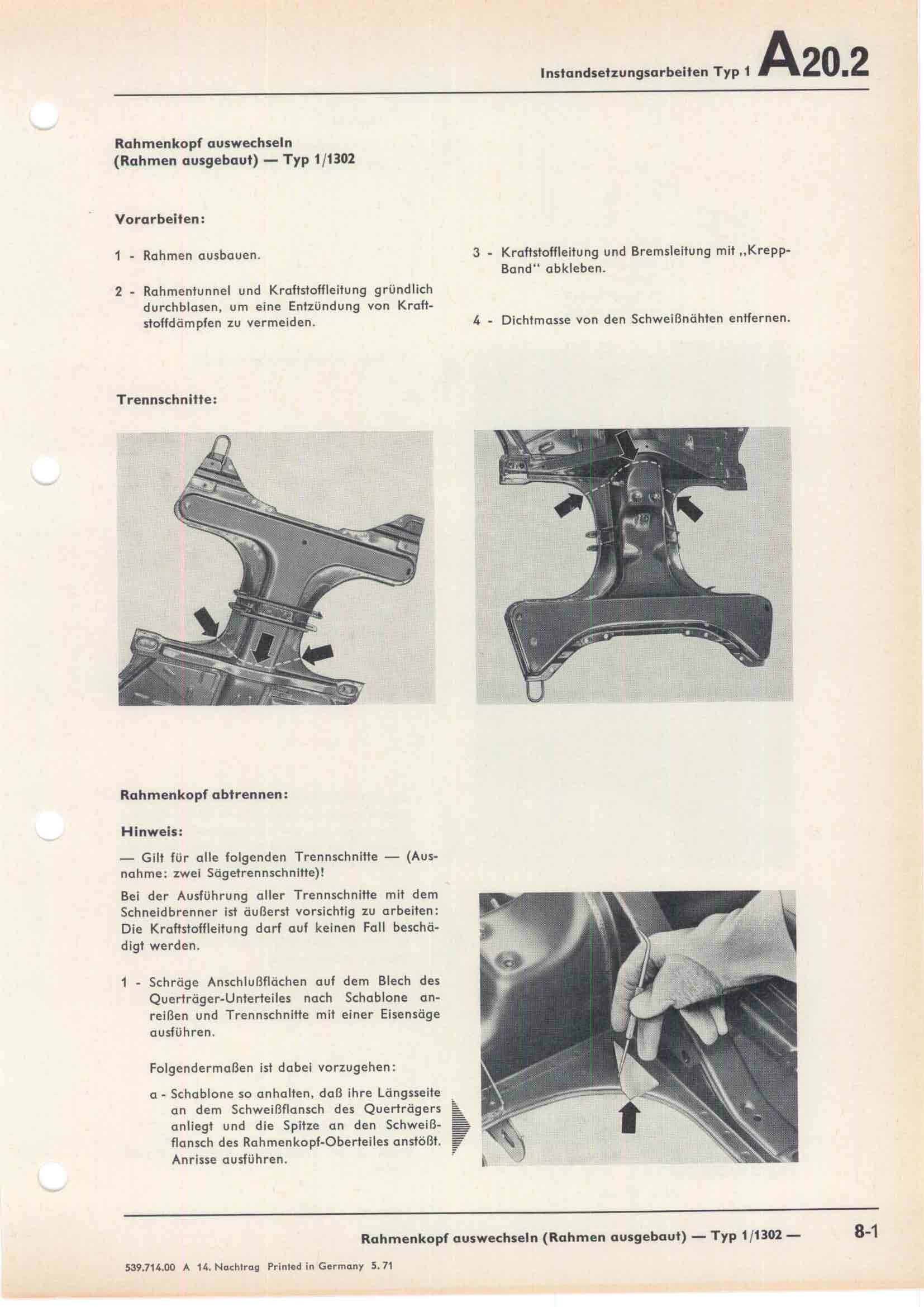 Rahmenkopf auswechseln (Rahmen ausgebaut) - Typ1/1302