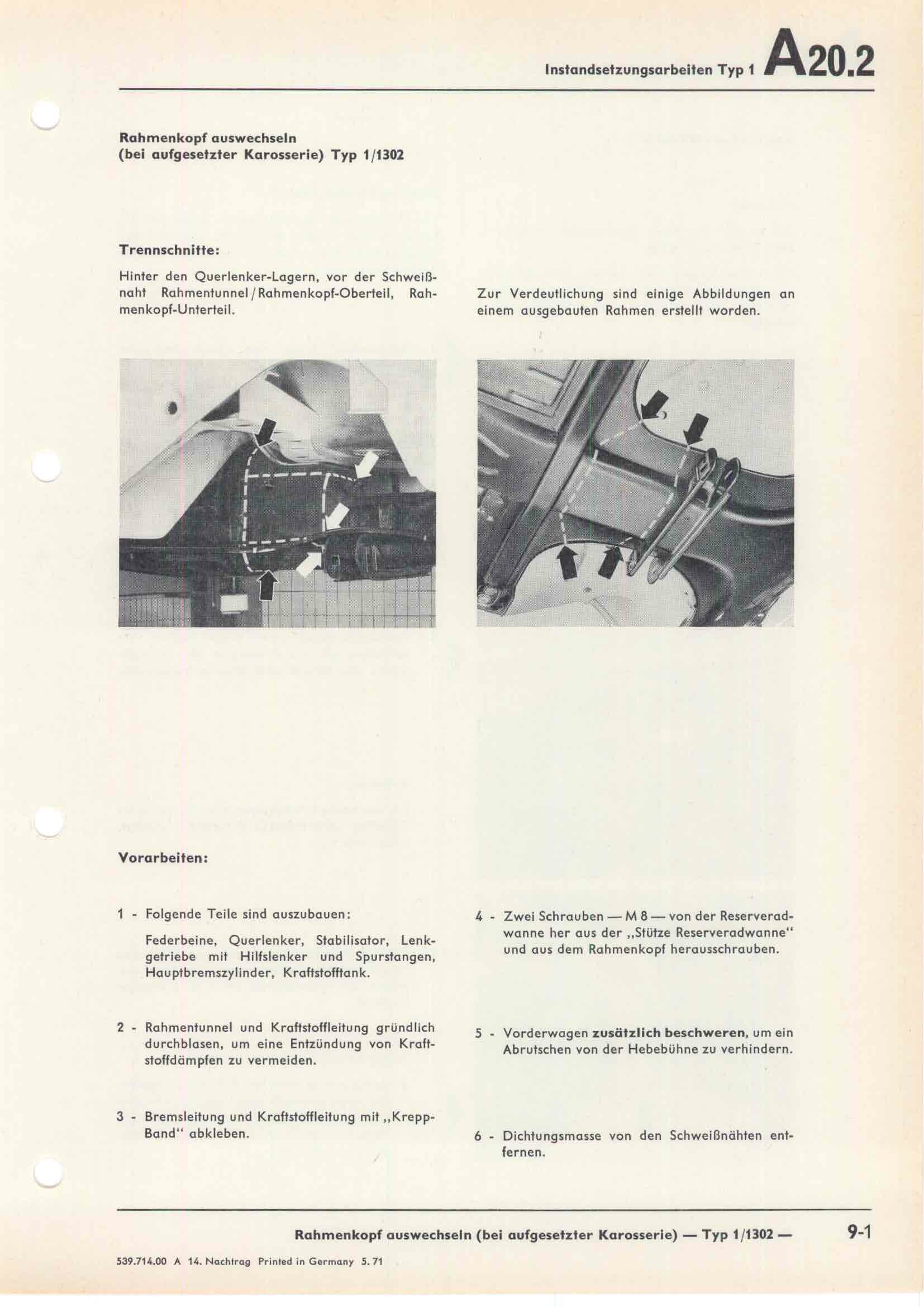 Rahmenkopf auswechseln (bei aufgesetzter Karosserie) - Typ1/1302